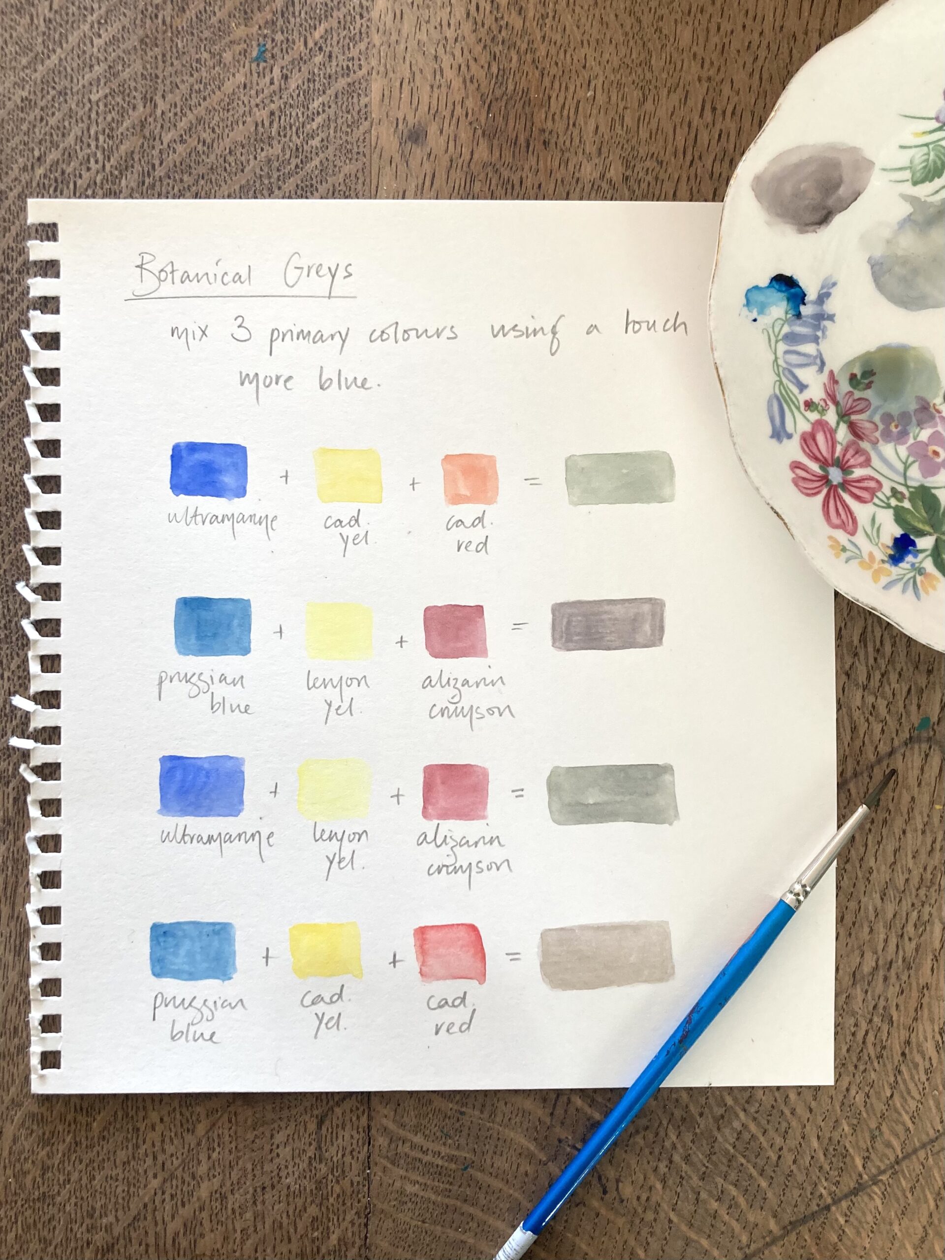 Botanical grey mixes with Karen Green botanical art tutor at Pegasus Art.