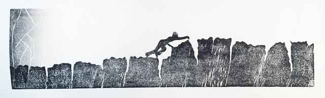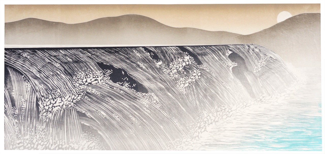 Tide Race woodblock print by Rod Nelson