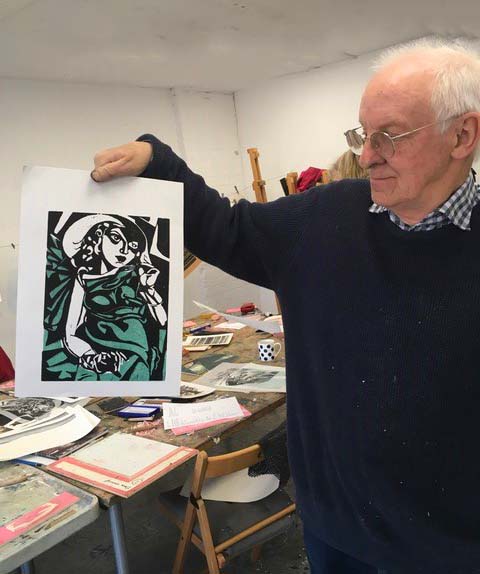 Expert printmaker Rod Nelson lives just up the hill from Pegasus Art. Luckily for us, he’s right on the doorstep and comes to teach ‘Simple Woodblock Printing’ on a two day course each year. It’s wonderful because he is such a well regarded printmaker and he is very generous in sharing his passion for printmaking with all his students.
