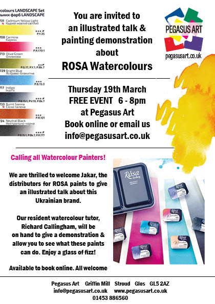 Calling all watercolour enthusiasts, please join the Jakar team, distributors for ROSA watercolours, as they introduce us to this brand. We are hoping to have some free samples for you and a discount on product for one night only.